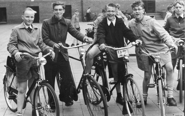 ook een ploeg met onderscheidende kenmerken, boven de kelderdeur staat op het bordje HBS 5 GYM V VI , toen werd die kelder dus als fietsenstalling gebruikt